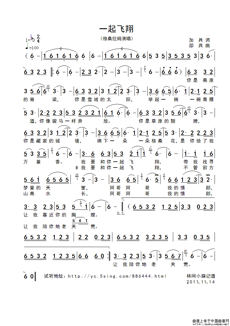 作词:加冰   作曲:邵兵   演唱(奏):格桑拉姆   格式:简谱   来源:林间小路 记谱   上传:~金沙浪~   日期:2011-11-25   浏览次数: