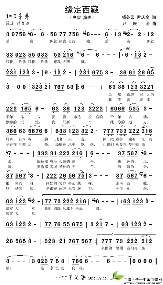 关于《缘定西藏》曲谱的评论
