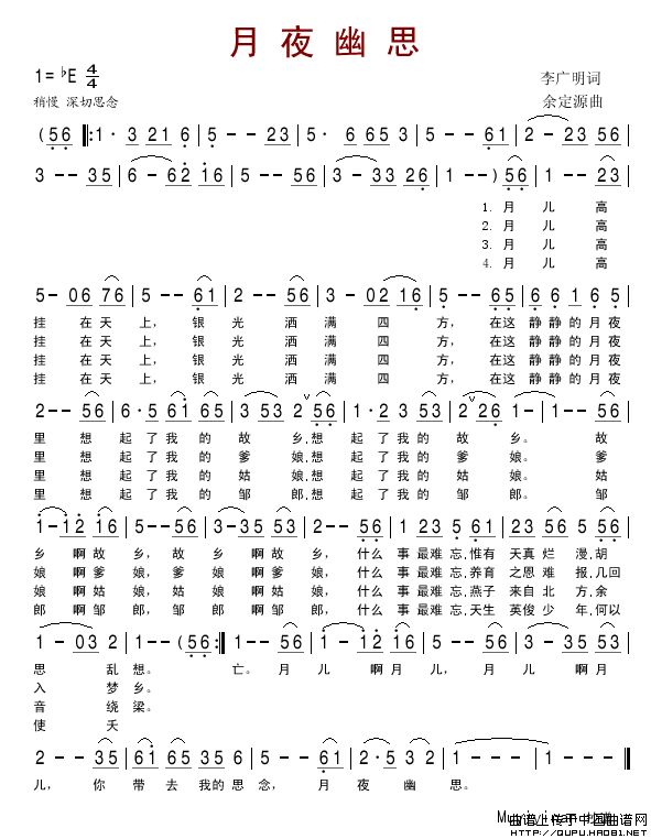 关于《月夜幽思》曲谱的评论
