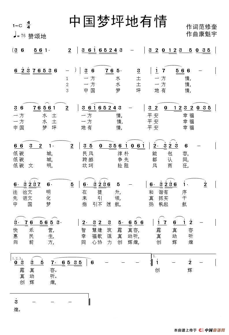 关于《中国梦坪地有情》曲谱的评论