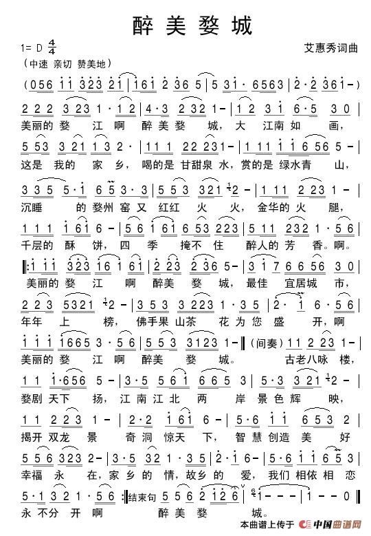关于《醉美婺城 艾惠秀词曲》曲谱的评论