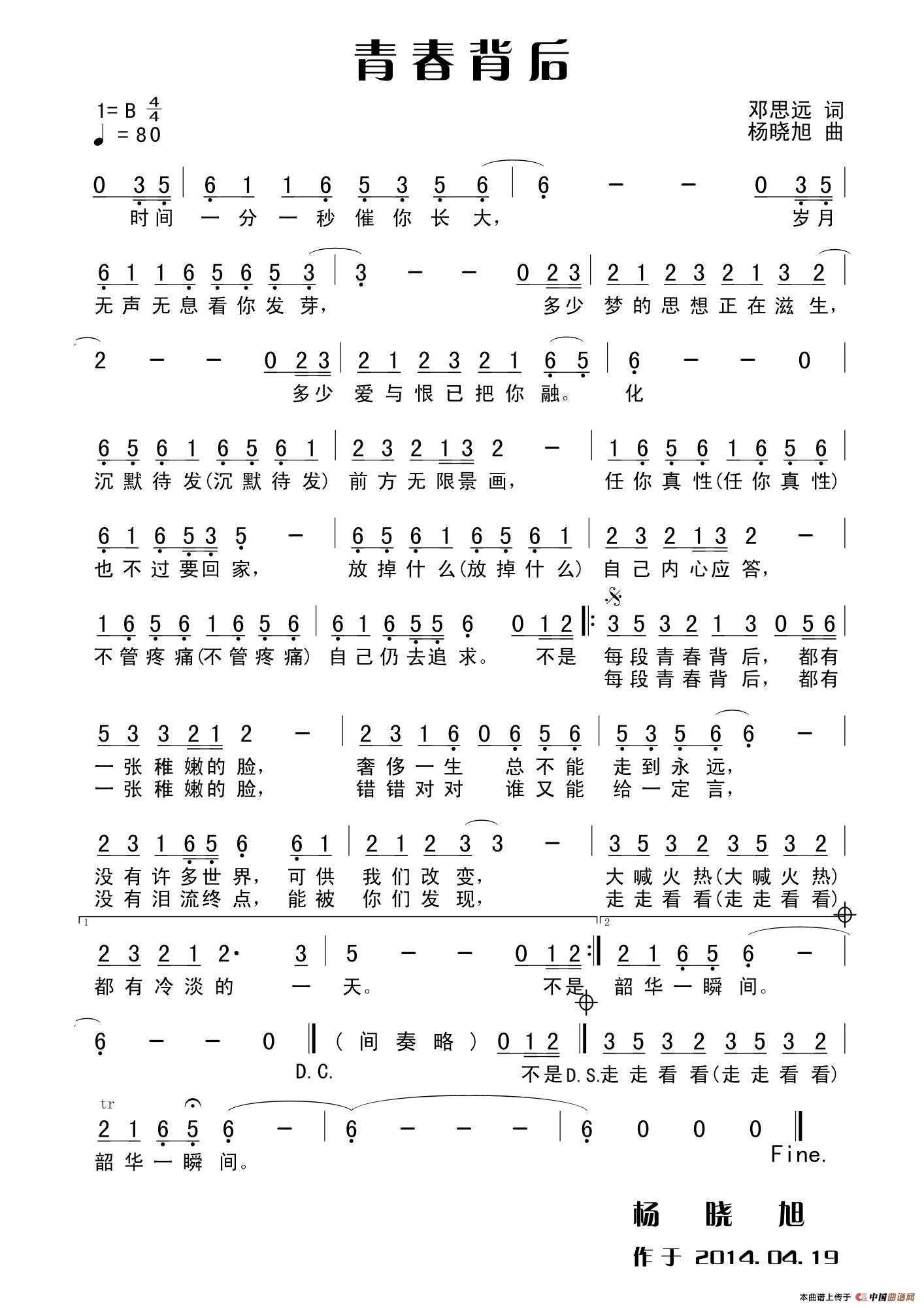 关于《青春背后》曲谱的评论