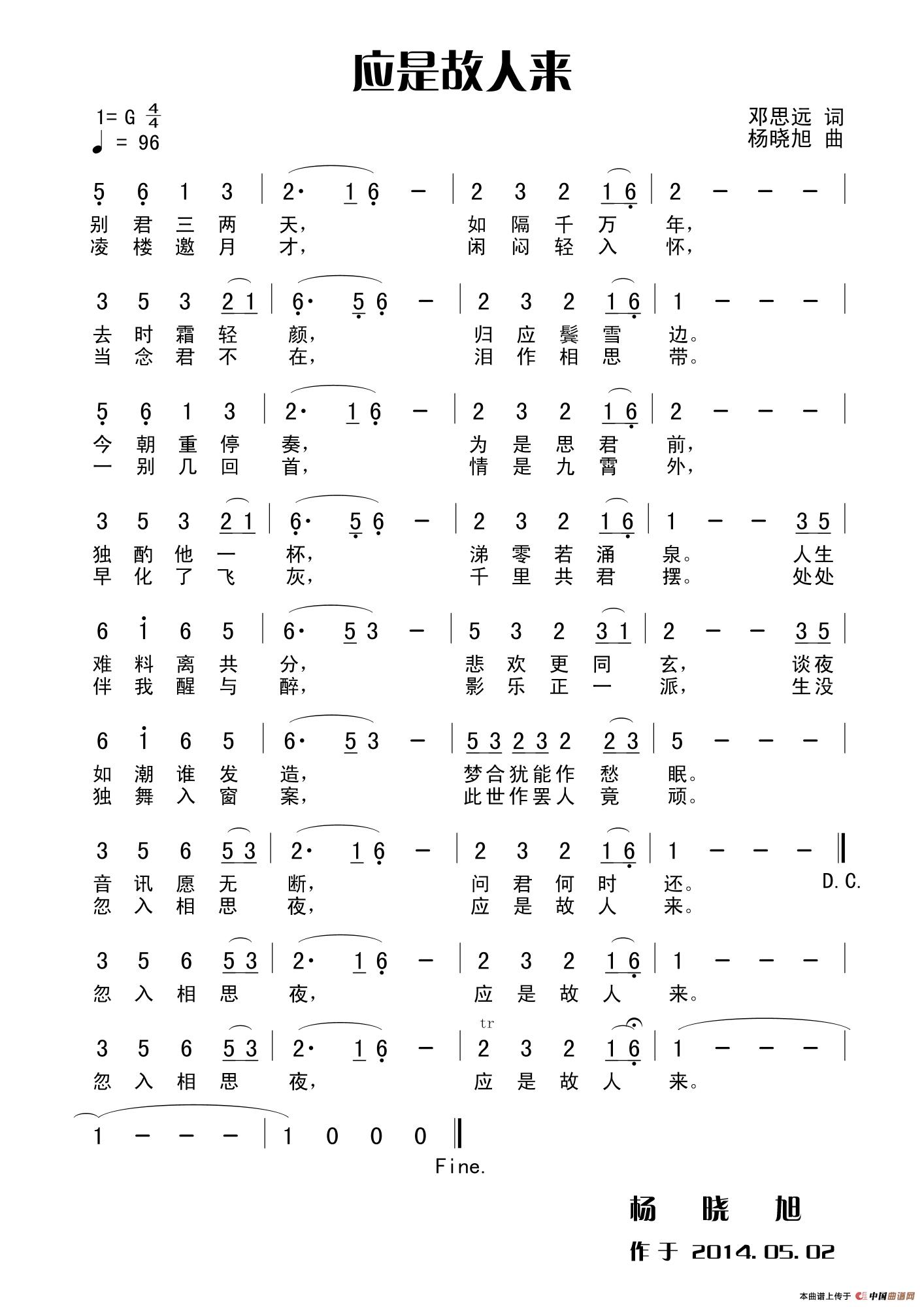 当前位置: 首页 谱友园地 谱友上传 应是故人来