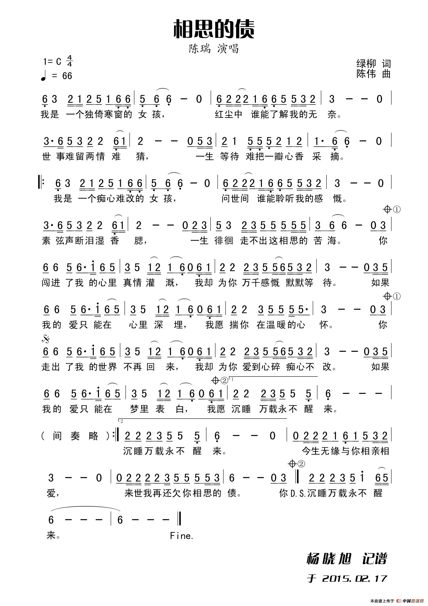 当前位置: 首页 谱友园地 谱友上传 相思的债