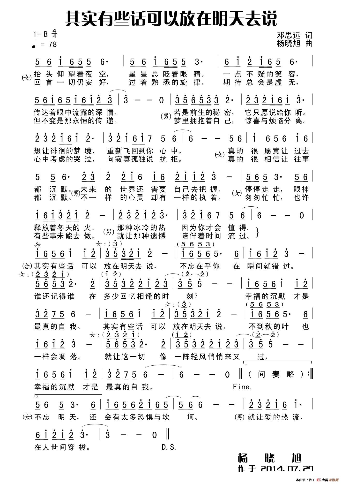 关于《其实有些话可以放在明天去说》曲谱的评论