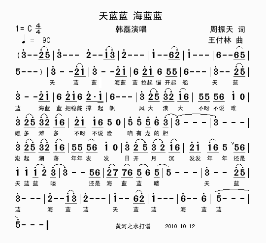 关于《天蓝蓝 海蓝蓝》曲谱的评论