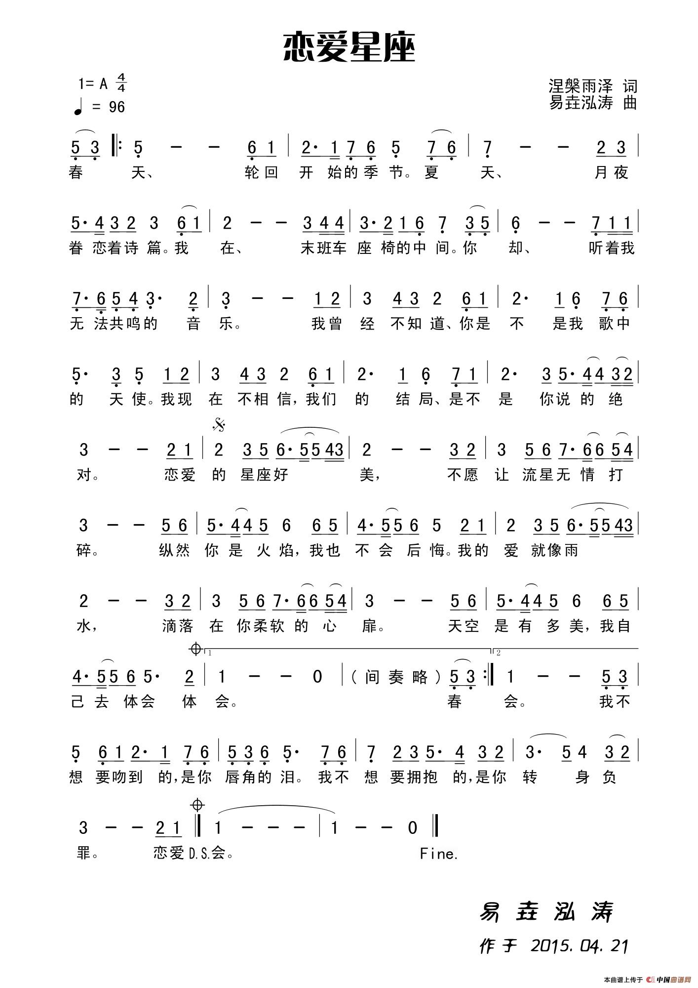 关于《恋爱星座》曲谱的评论