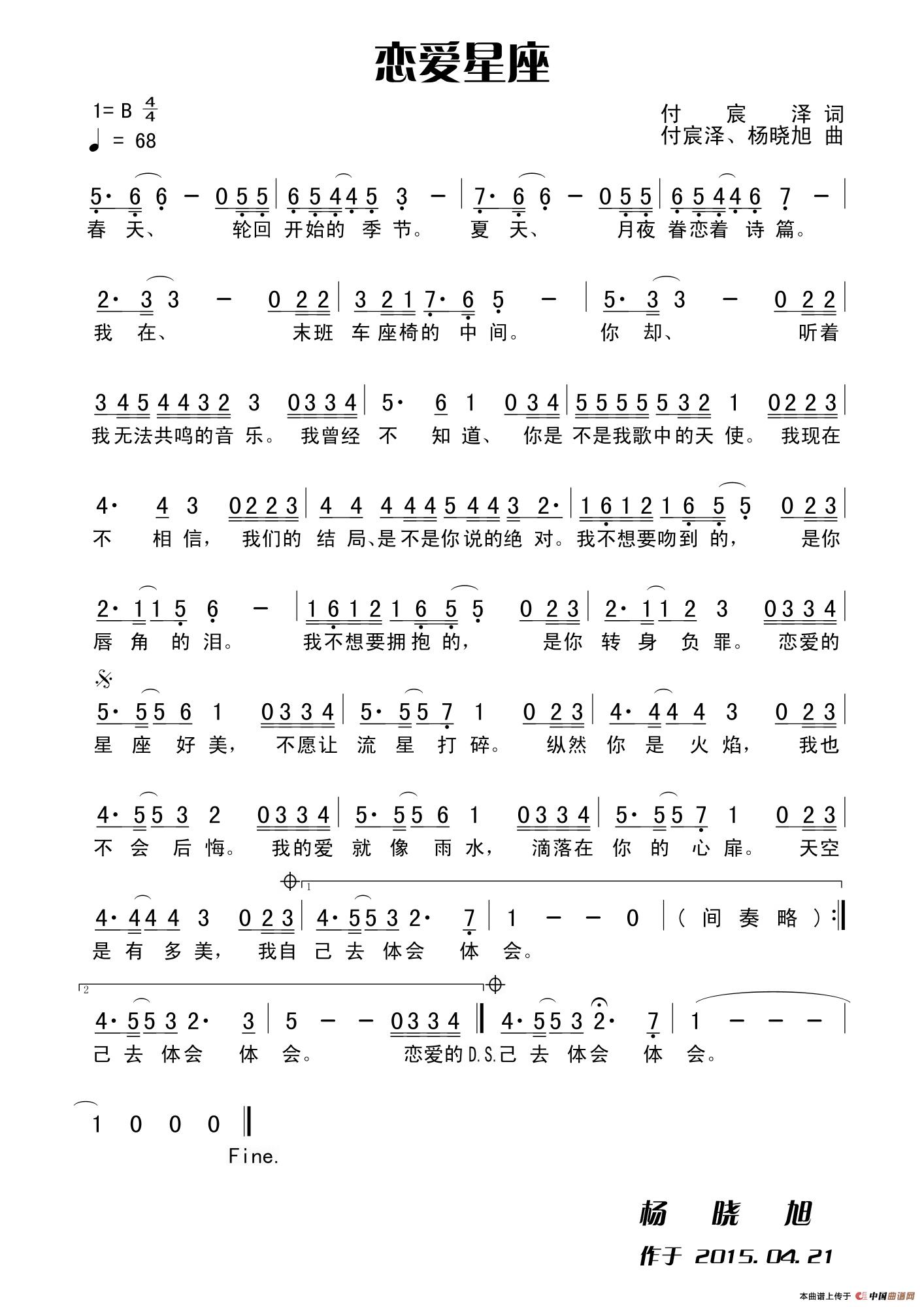 恋爱星座(付宸泽词 付宸泽、杨晓旭曲)