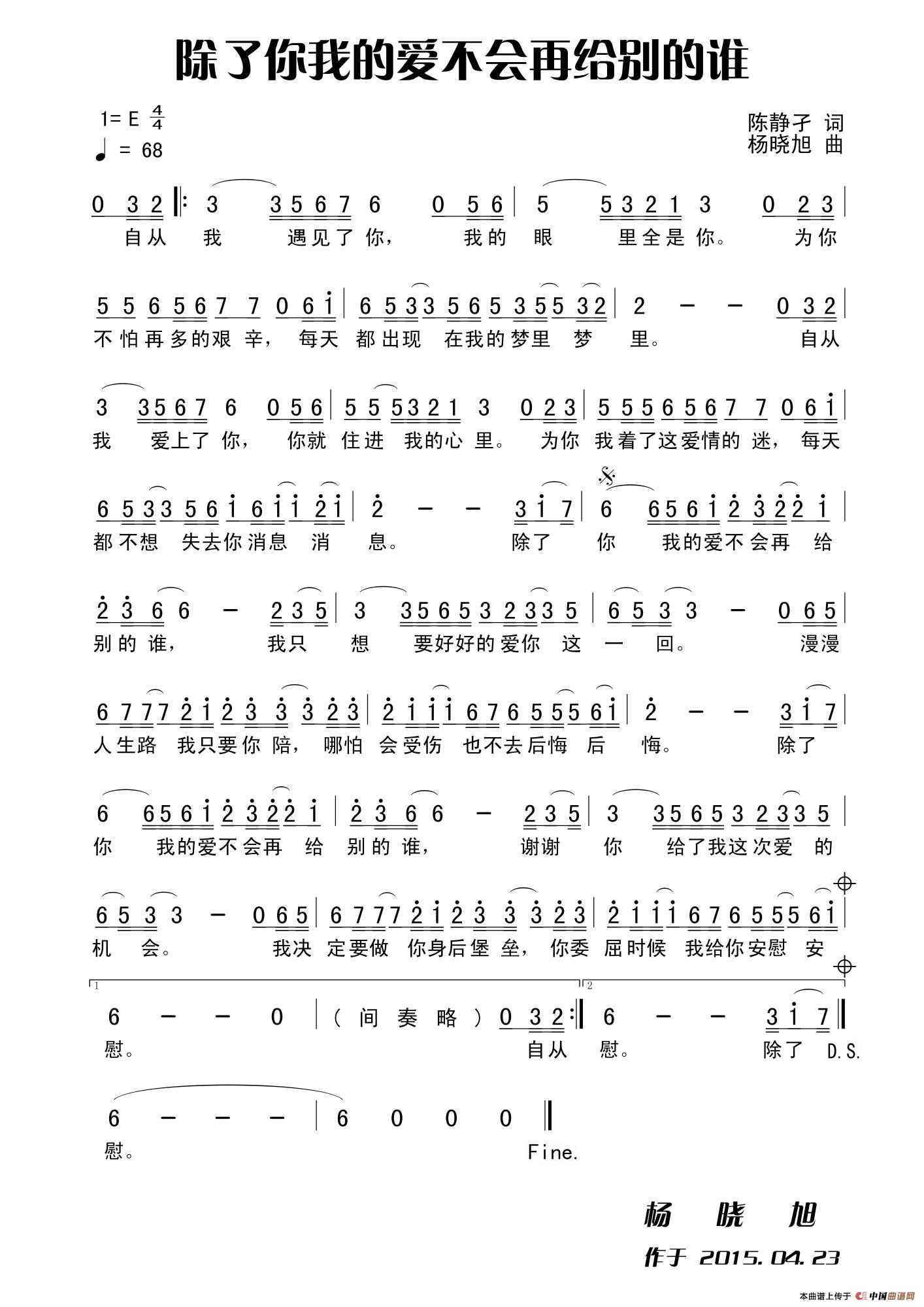 关于《除了你我的爱不会再给别的谁》曲谱的评论