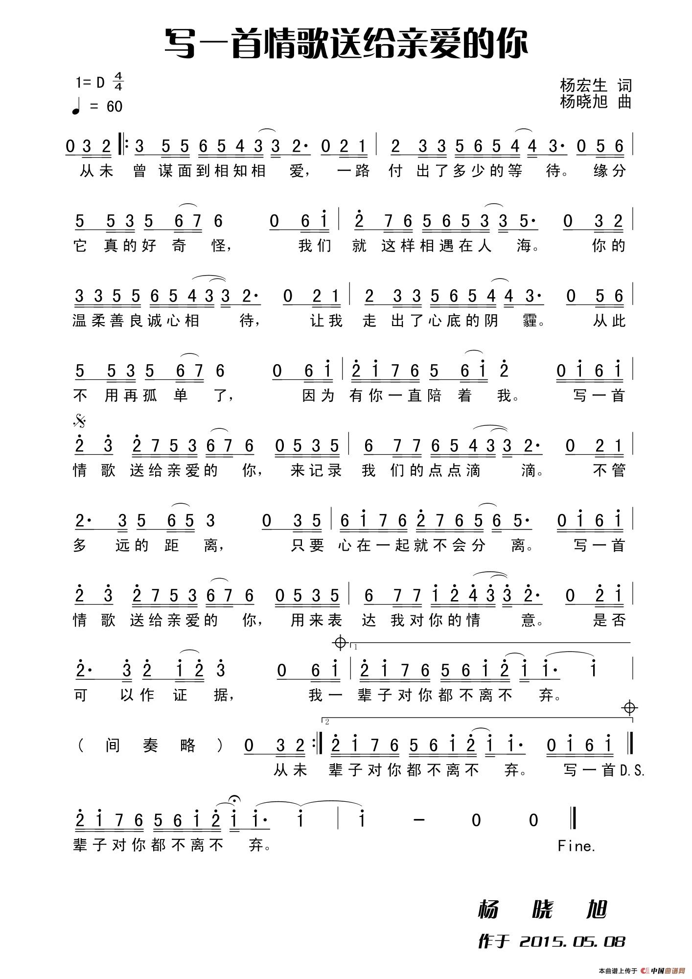 写一首情歌送给亲爱的你