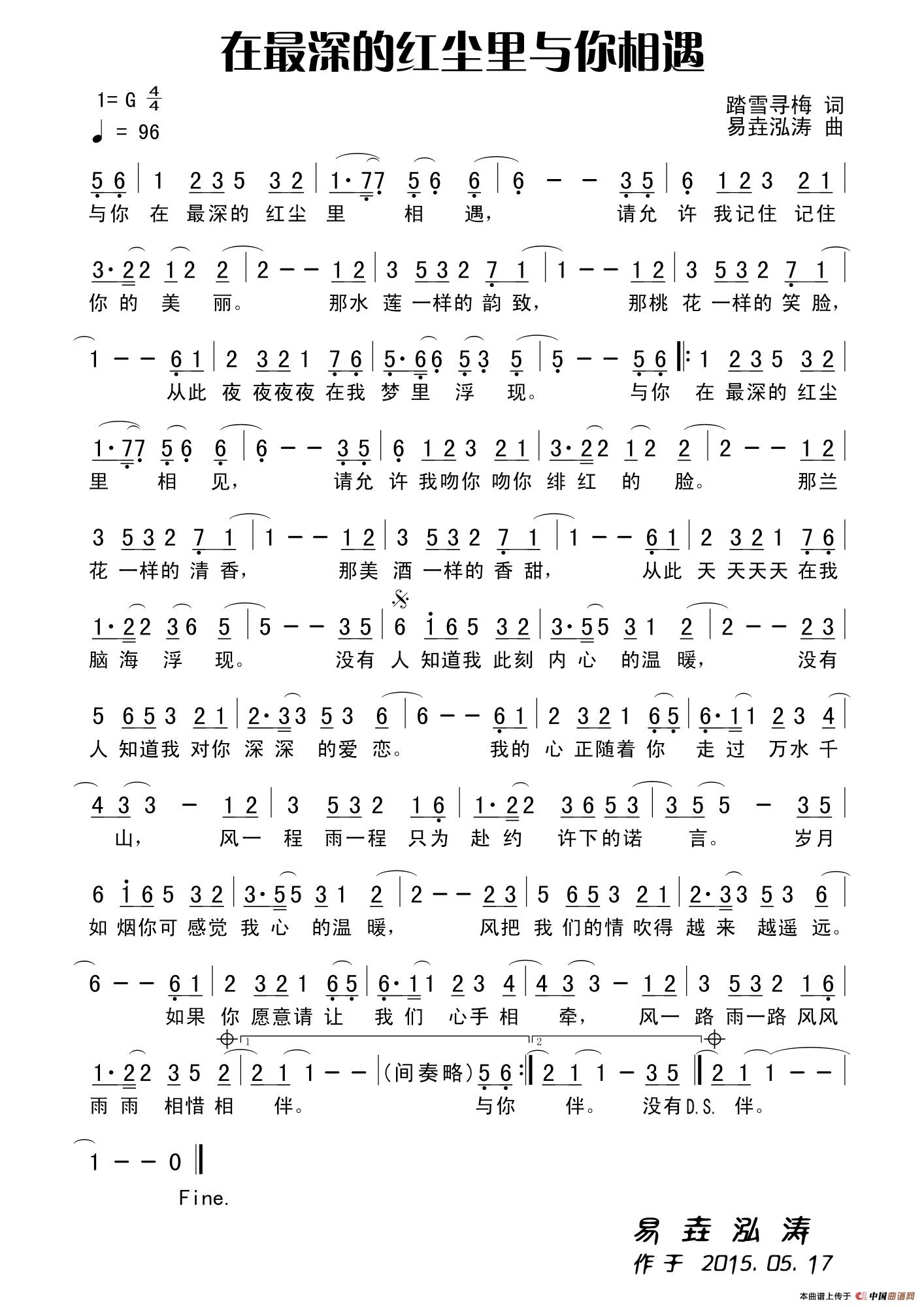 关于《在最深的红尘里与你相遇》曲谱的评论