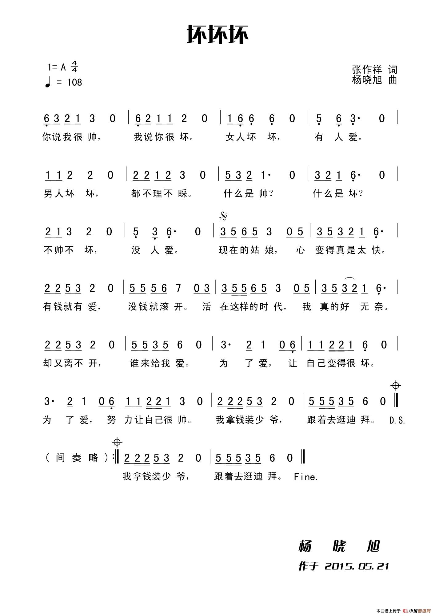 关于《坏坏坏》曲谱的评论
