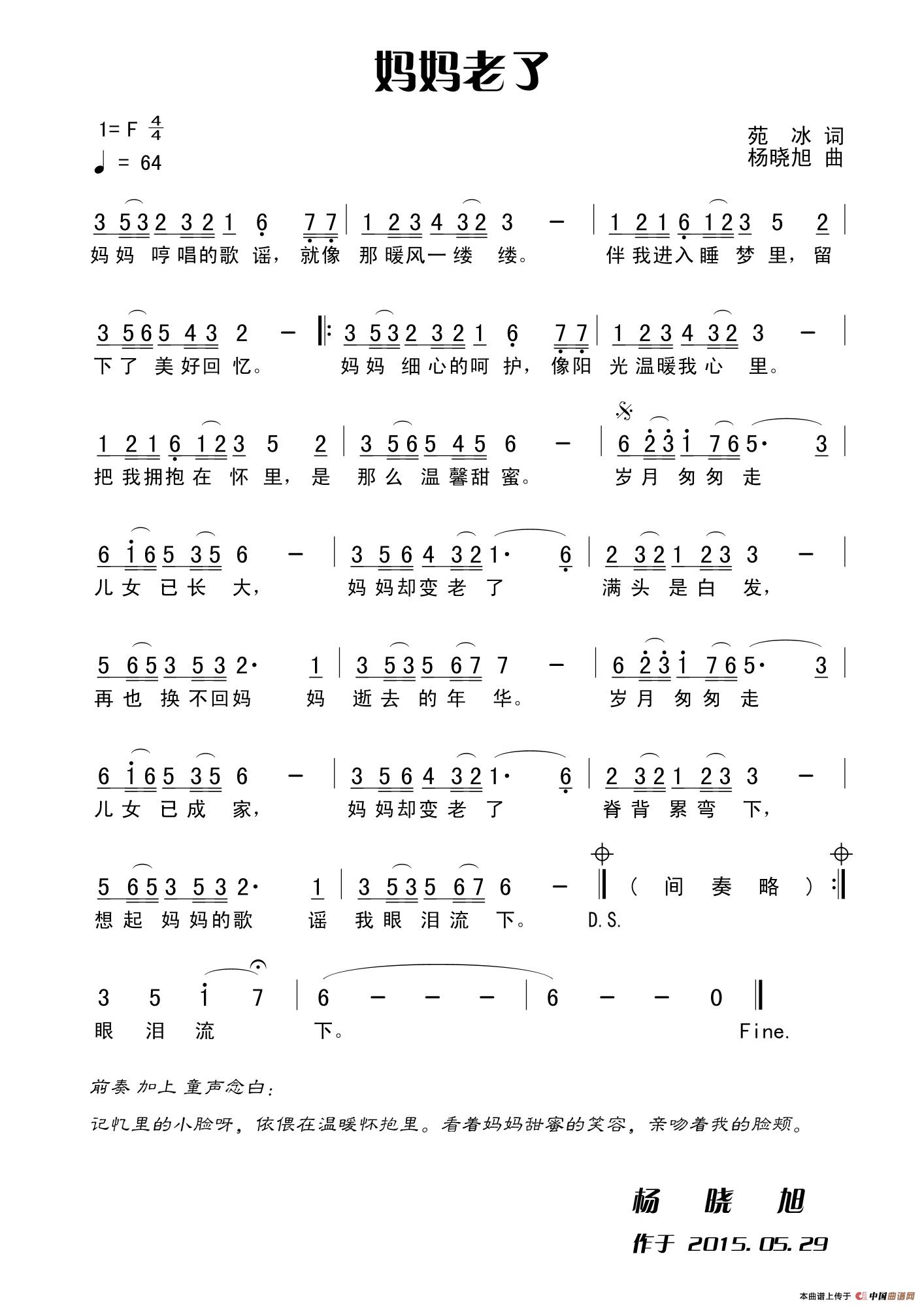关于《妈妈老了》曲谱的评论