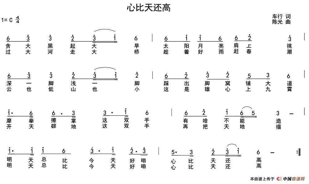 关于《心比天还高》曲谱的评论
