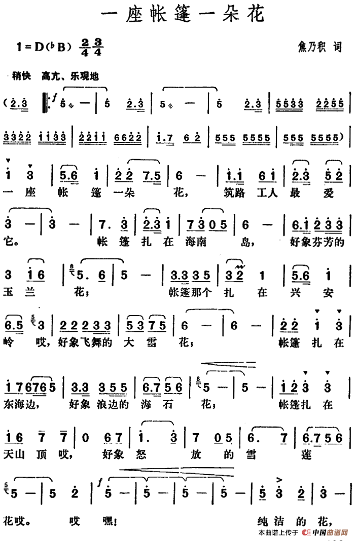 关于《一座帐篷一朵花》曲谱的评论