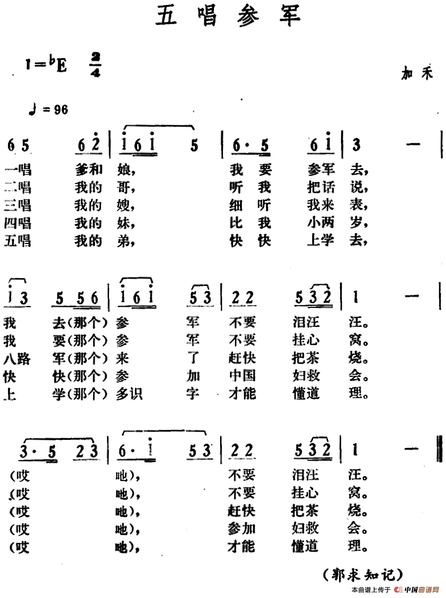 作曲:湖南嘉禾革命民歌 来源:《中国曲谱网》 上传:热爱音乐88