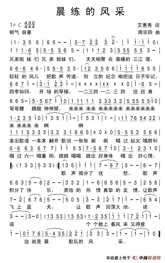 关于《晨练的风采》曲谱的评论