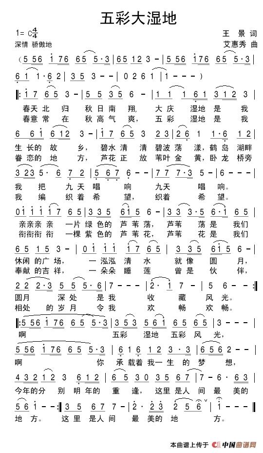 关于《五彩大湿地》曲谱的评论