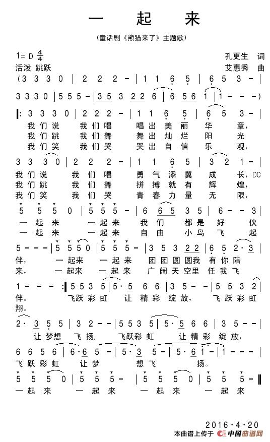 关于《一起来》曲谱的评论
