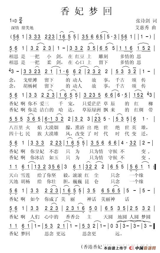 关于《香妃梦回 (张诗剑词 艾惠秀曲)》曲谱的评论
