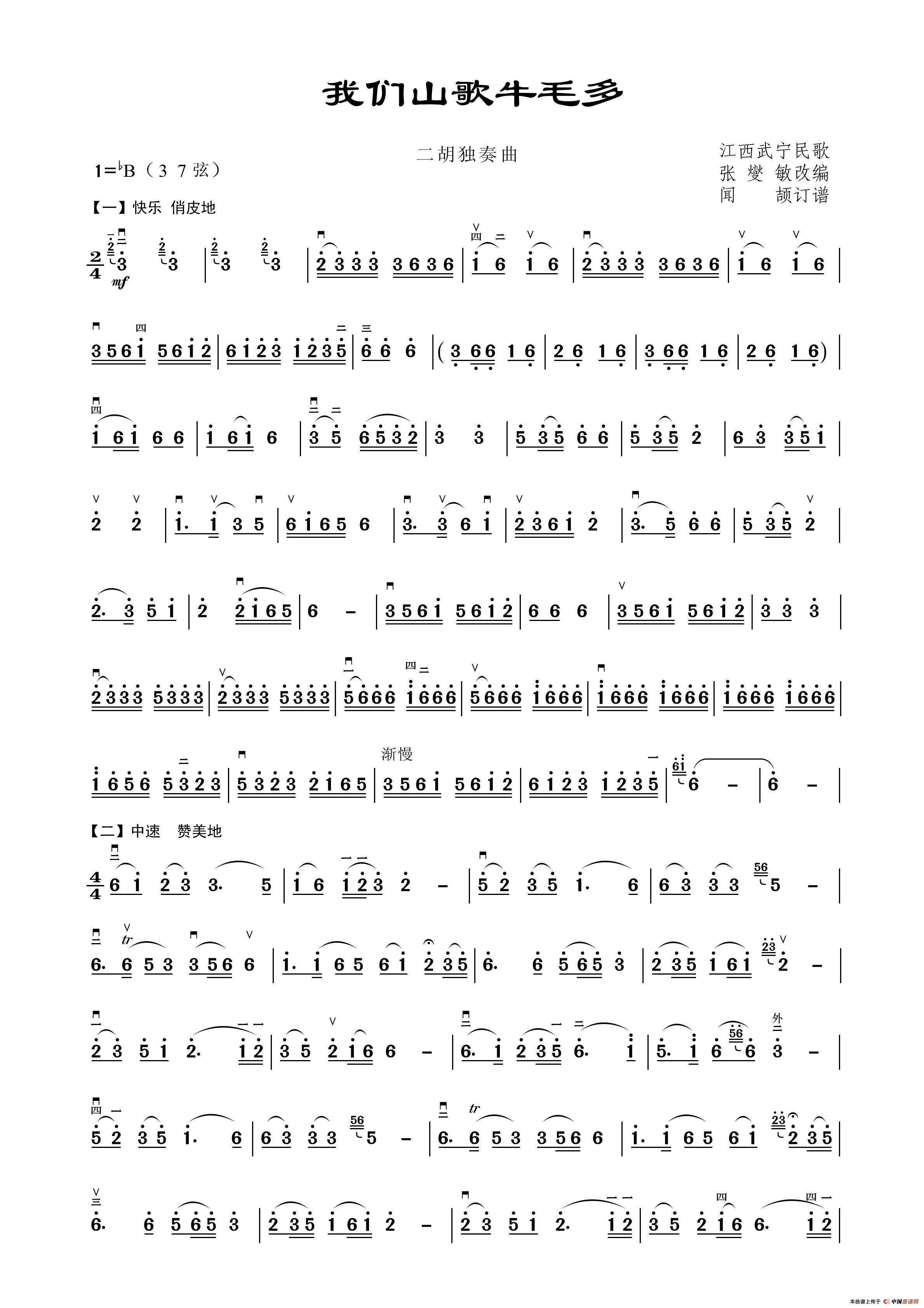 我们山歌牛毛多(二胡独奏谱)