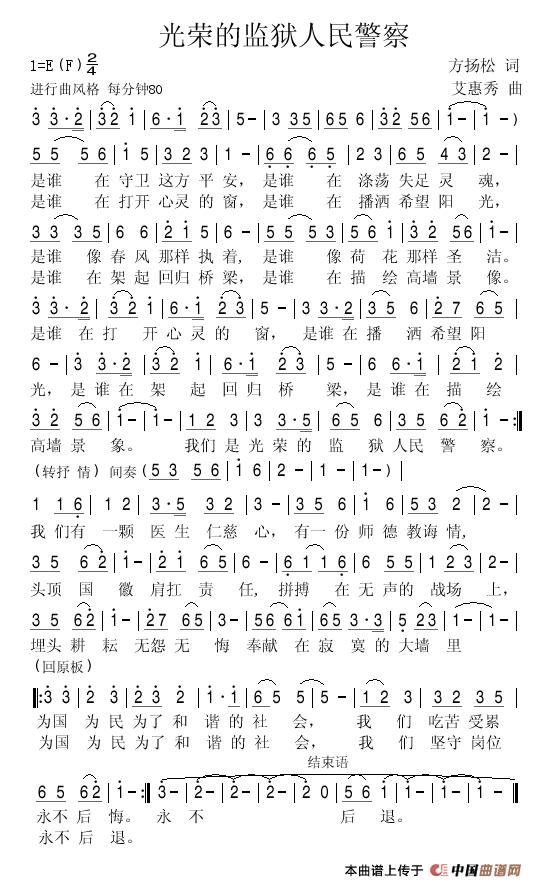 关于《光荣的监狱人民警察》曲谱的评论