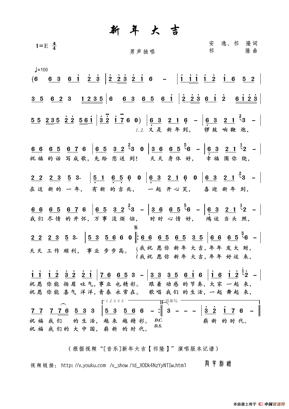 新年大吉(安逸、祁隆词 祁隆曲)