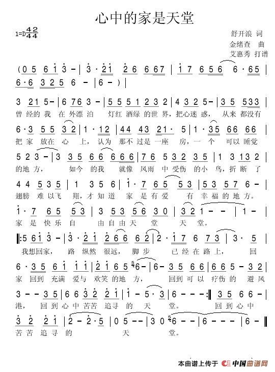 心中的家是天堂( 舒开浪词 金绪查曲)