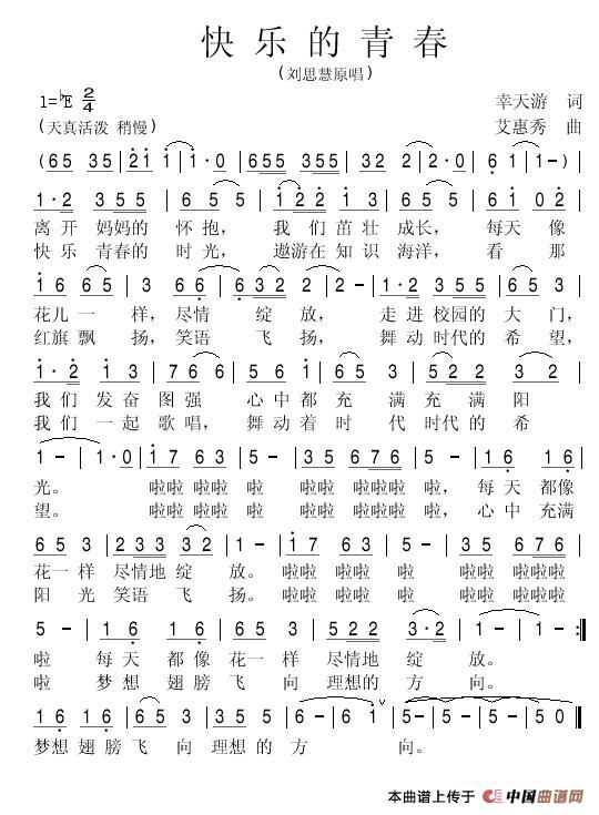关于《快乐的青春 (幸天游 词)》曲谱的评论