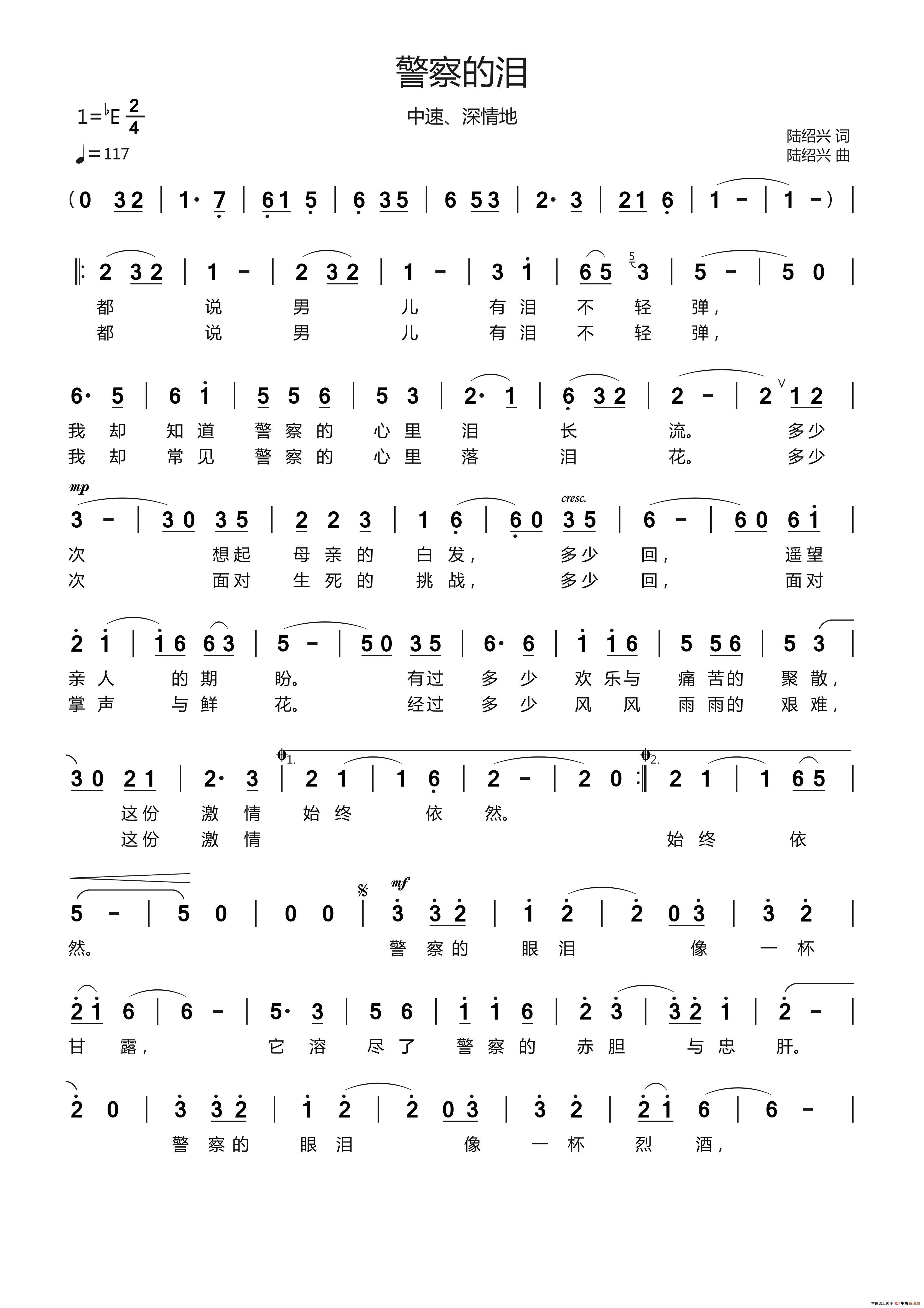 关于《警察的泪》曲谱的评论