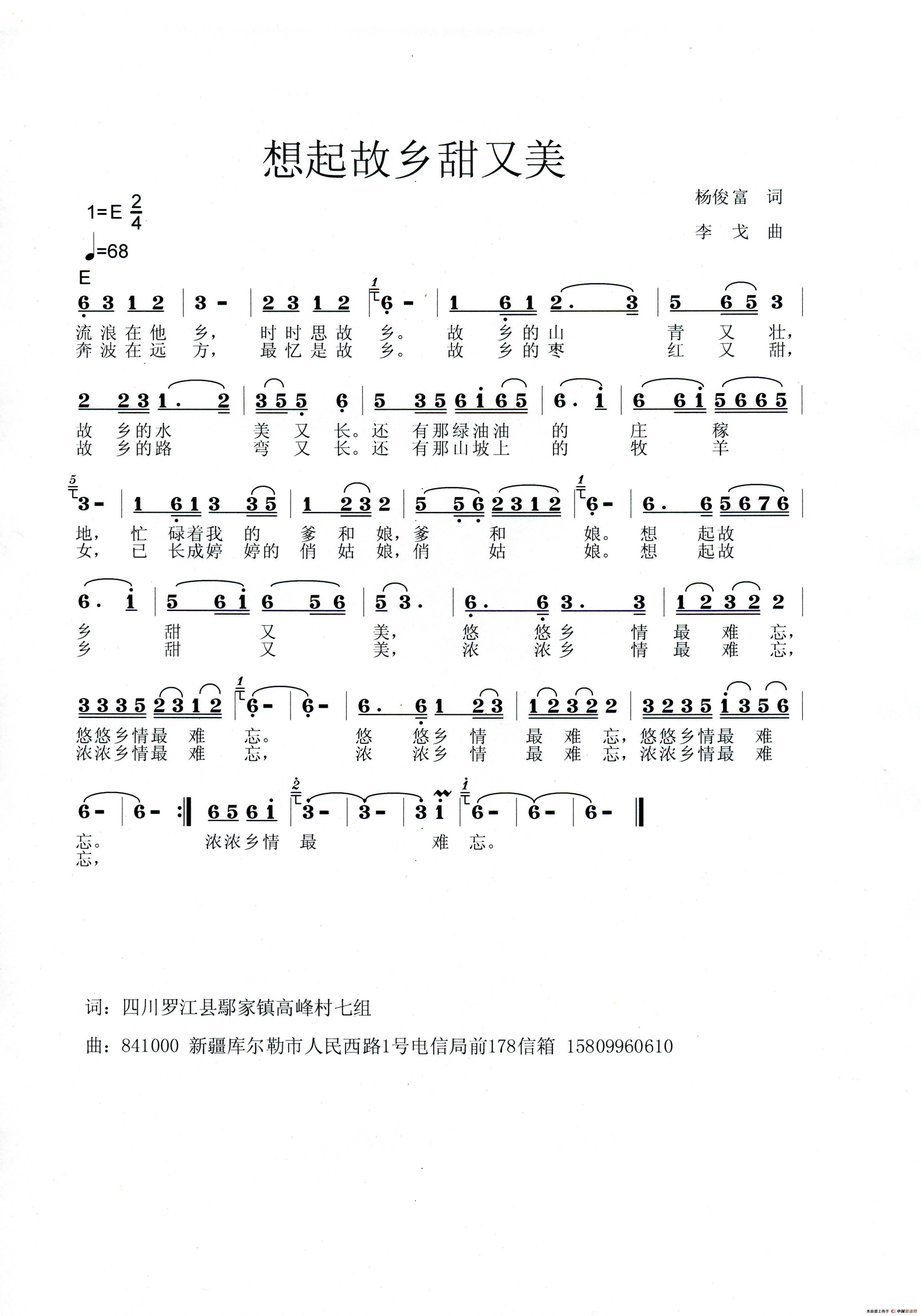 关于《想起故乡甜又美》曲谱的评论