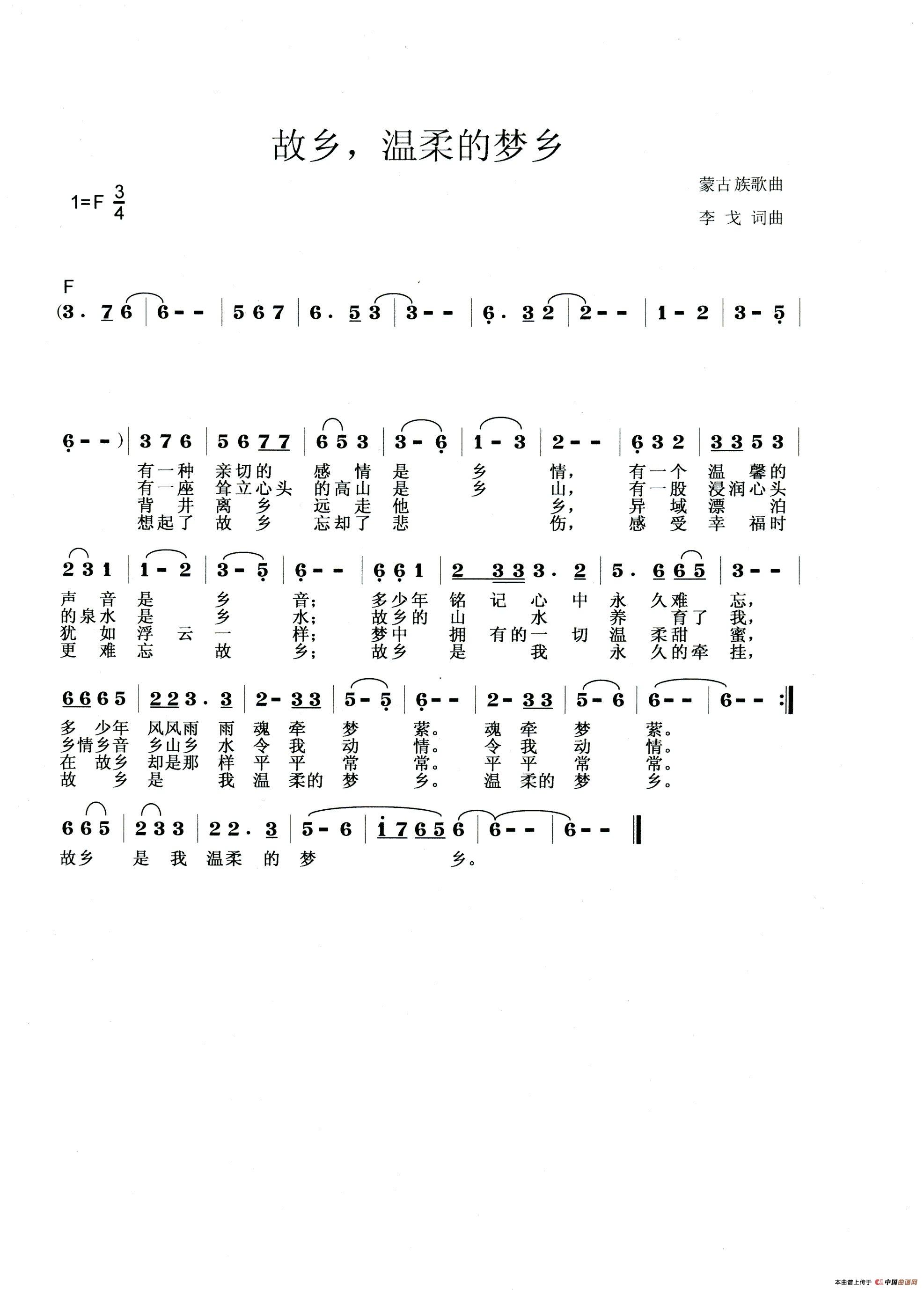 关于《故乡,温柔的梦乡》曲谱的评论