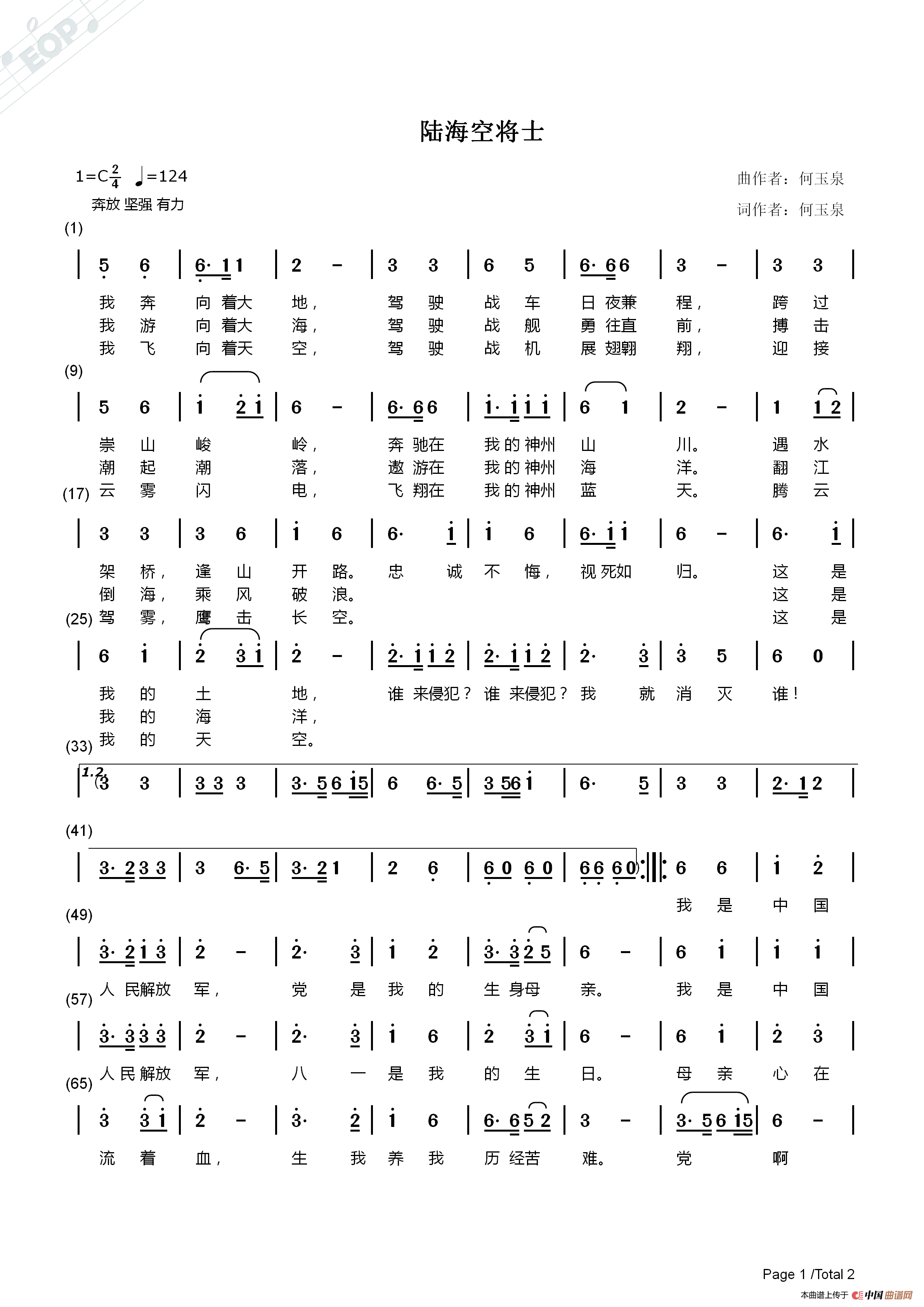提示:在曲谱图片上单击右键,选择“图片另存为...”即可将曲谱保存到您的电脑中,打印时候可将图片插入到WORD中,调整合适大小打印即可。