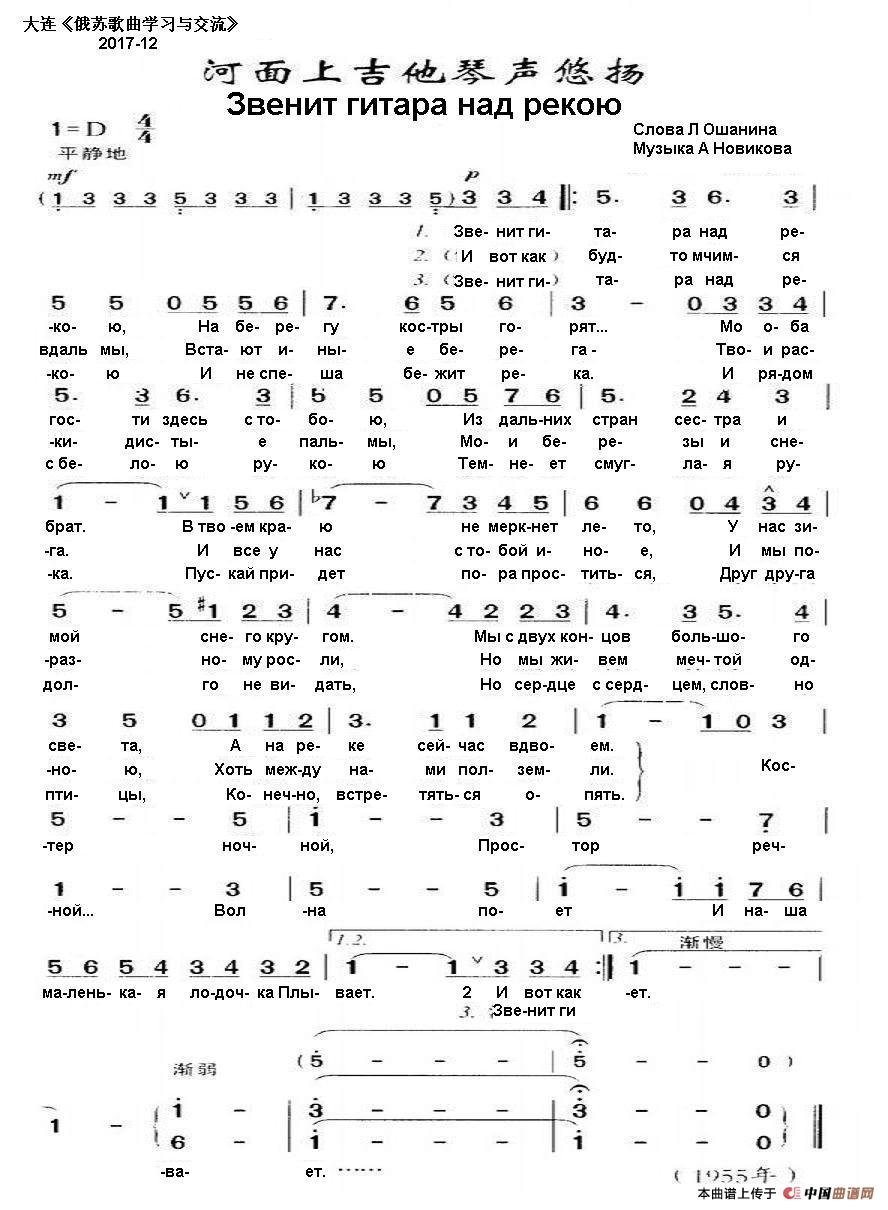 河面上吉他琴声悠扬Звенит гитара над рекою(中俄简谱)