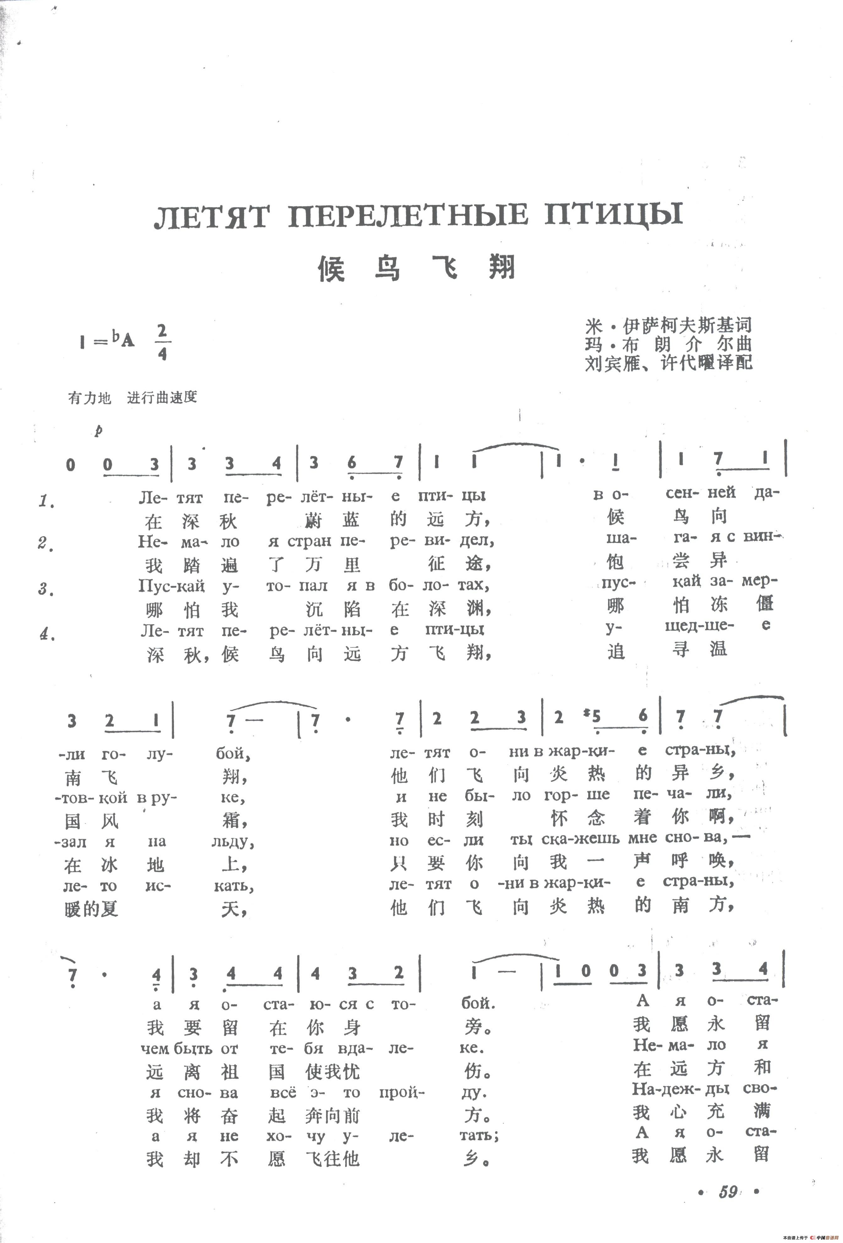 侯鸟飞翔летят перелетные птицы(中俄简谱)