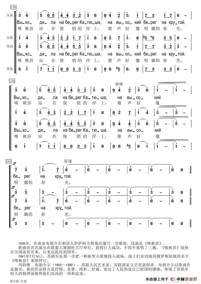 作词:伊.萨科夫斯基 作曲:姆.布朗介尔 来源:谱友大连家乡好上传 上传:大连家乡好