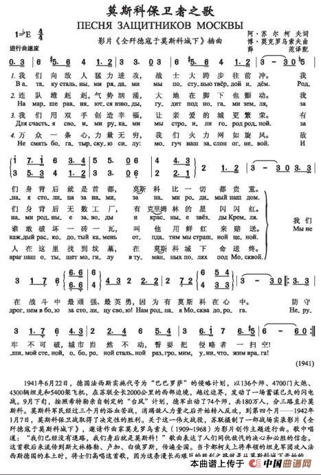 莫斯科保卫者之歌(ПЕСНЯ ЗАЩИТНИКОВ МОСКВЫ)…(中俄简谱)
