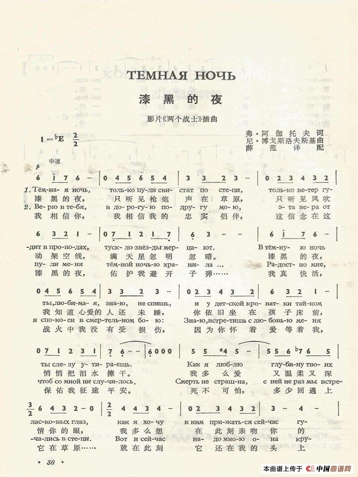 漆黑的夜Темная ночь(中俄简谱)