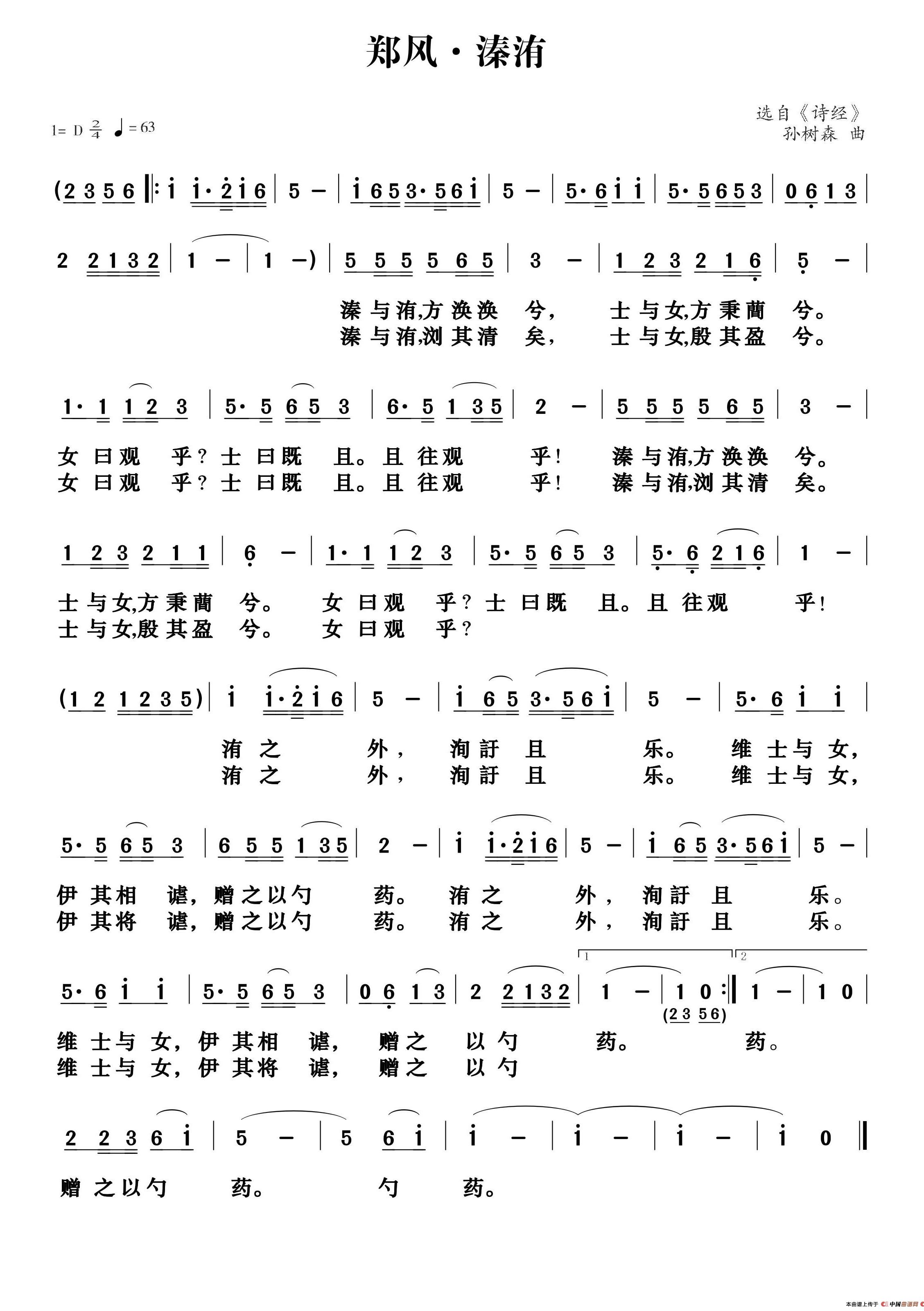 关于《诗经·郑风·溱洧》曲谱的评论