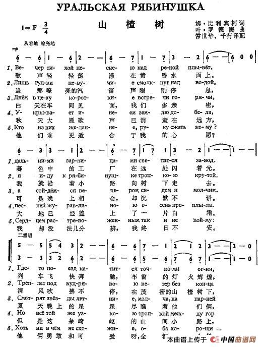 山楂树УРАЛЬСКАЯ РЯБИНУШКА(中俄简谱)
