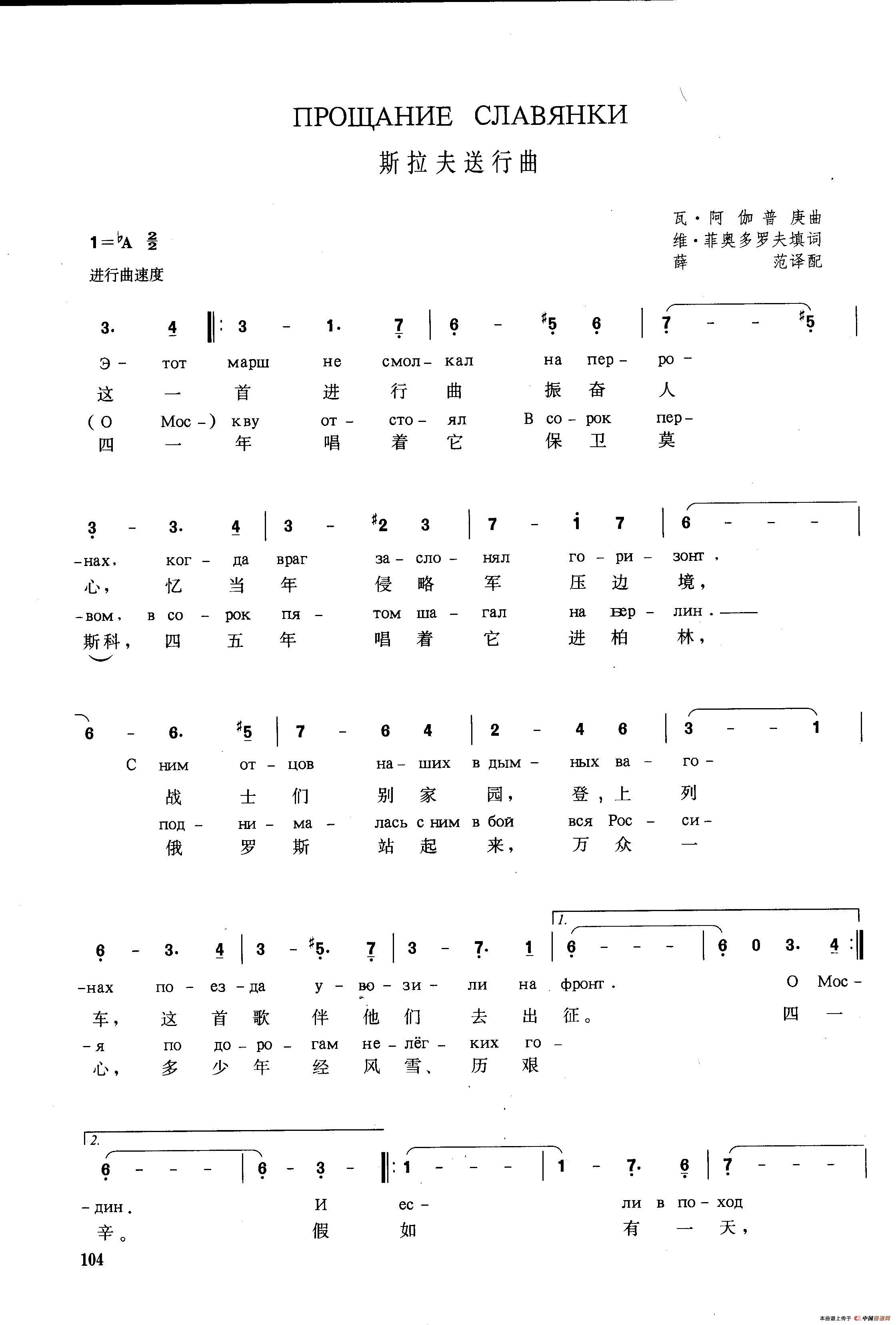 斯拉夫送行曲Прощание Славянки(中俄简谱)