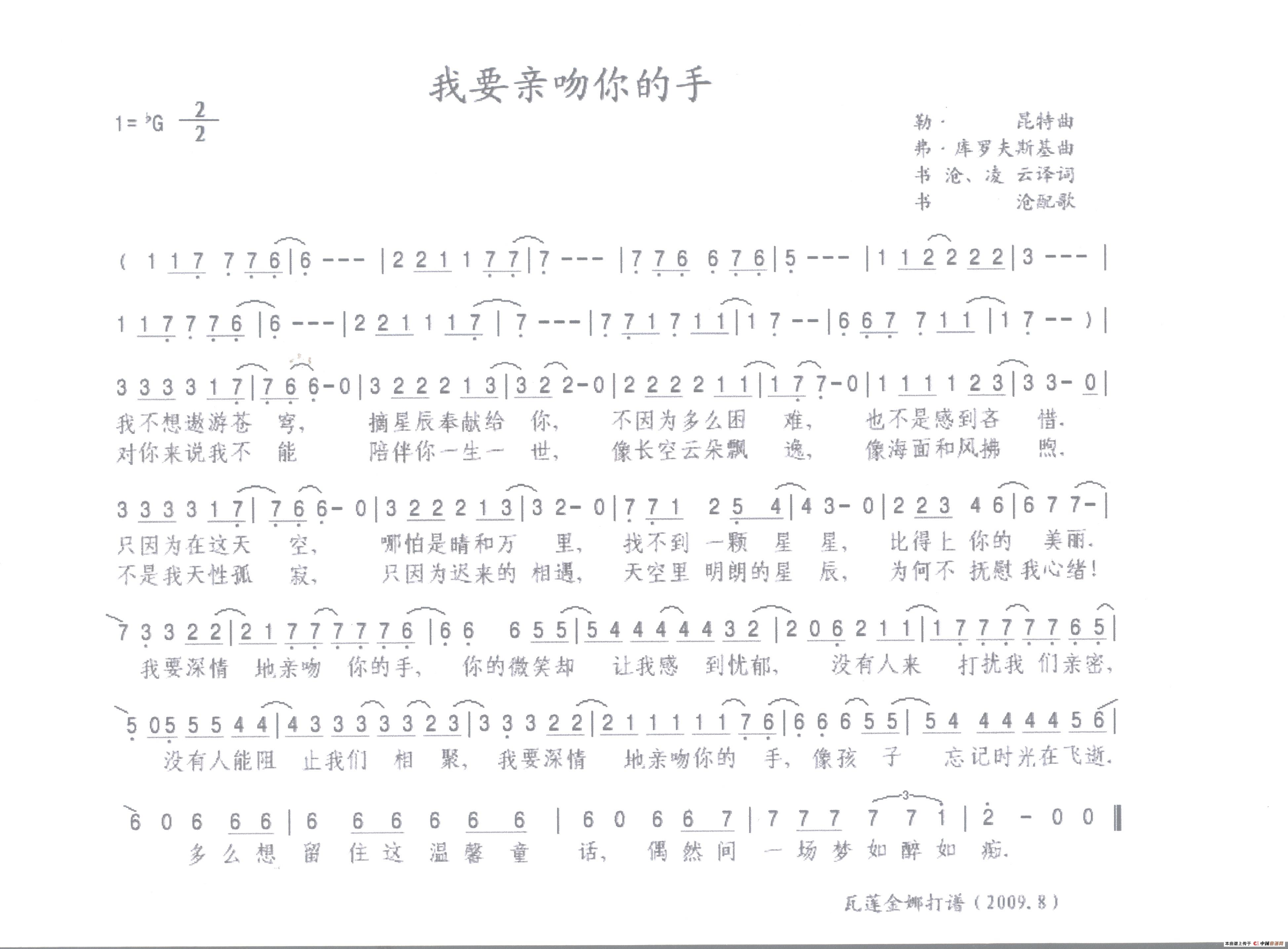 我要吻你的手Я буду руки твои целовать(中文简谱)