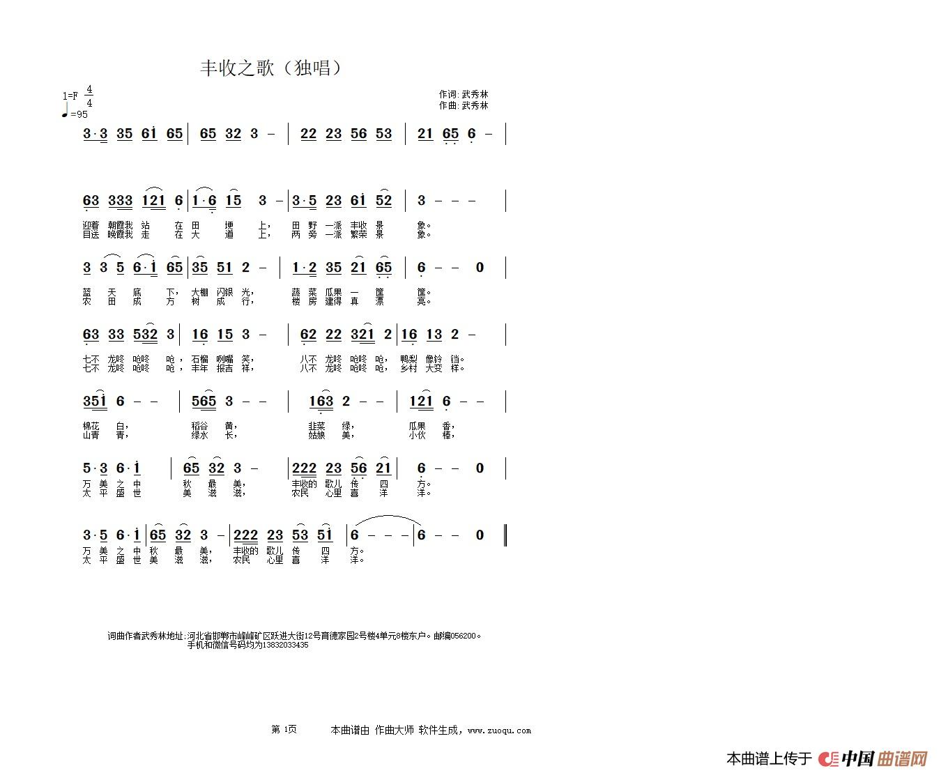 关于《丰收之歌)(独唱)》曲谱的评论