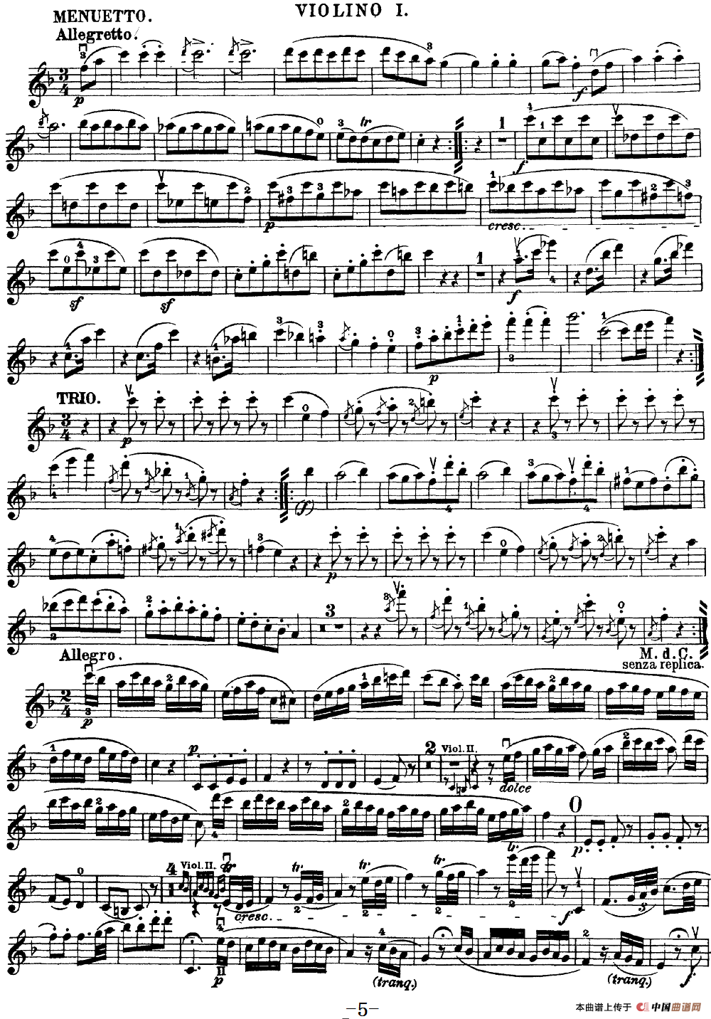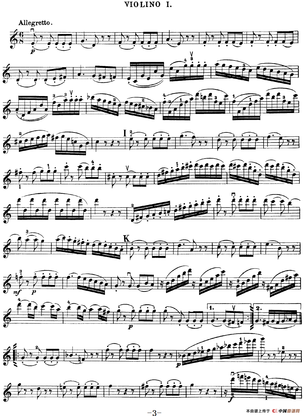 Mozart《Quartet No.23 in F Major,K.590》(Violin 1分谱)