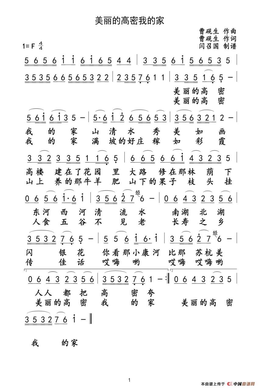 关于《美丽的高密我的家》曲谱的评论