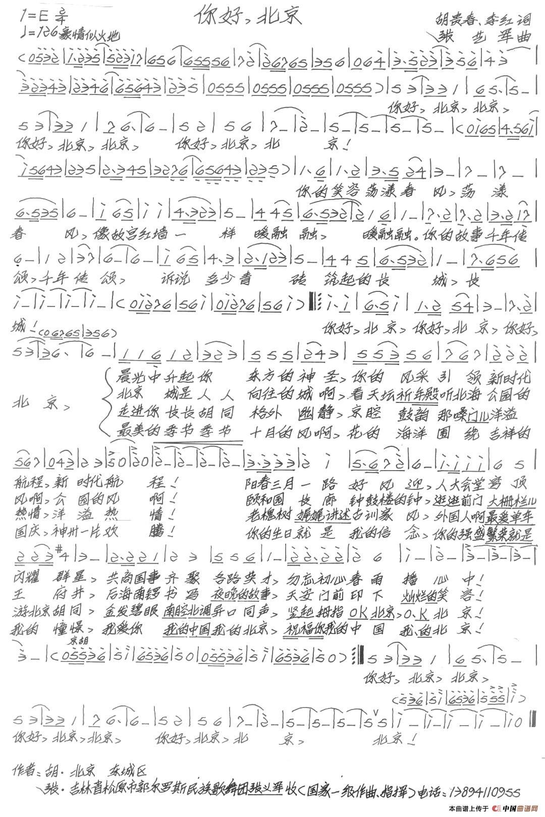 关于《你好,北京》曲谱的评论