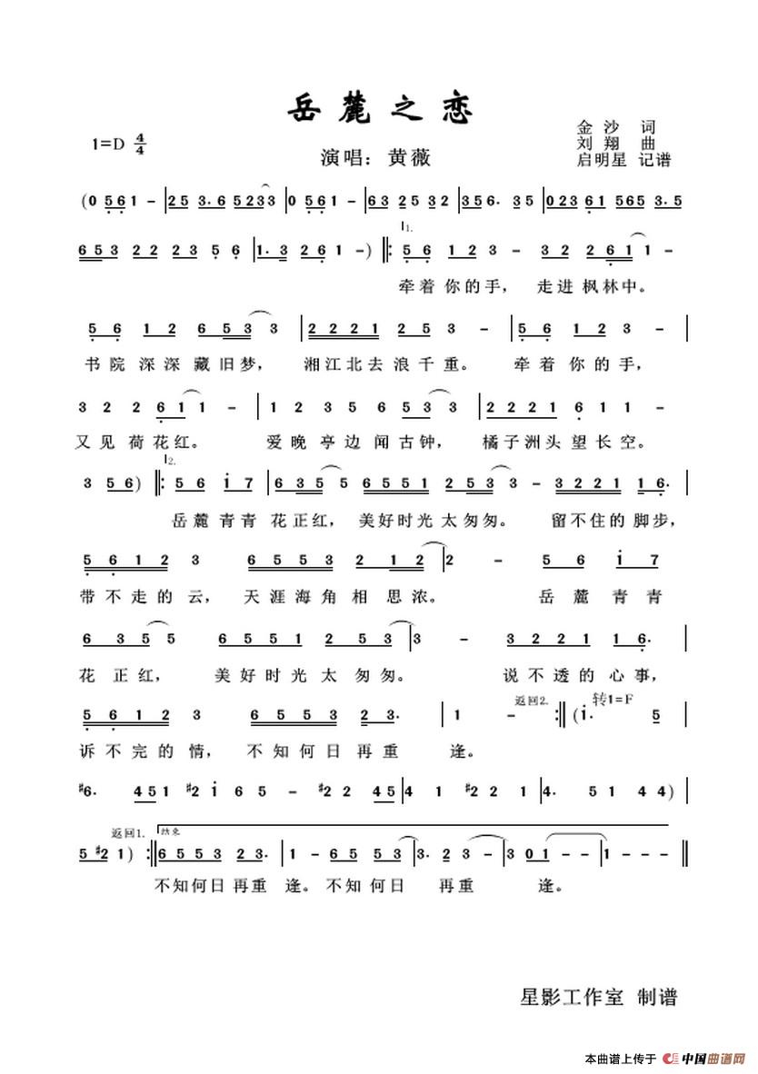 湖南旅游宣传歌曲。岳麓山——山上有个爱晚亭,山中有个岳麓院,山下有个橘子洲,在湘江的怀抱中长大的一座名山。