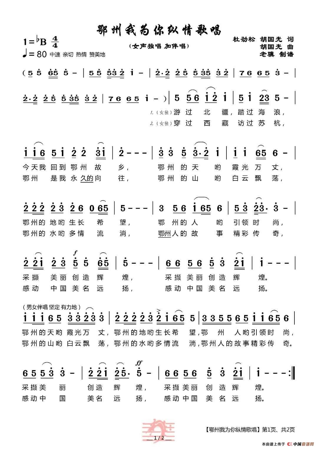 关于《鄂州我为你纵情歌唱》曲谱的评论