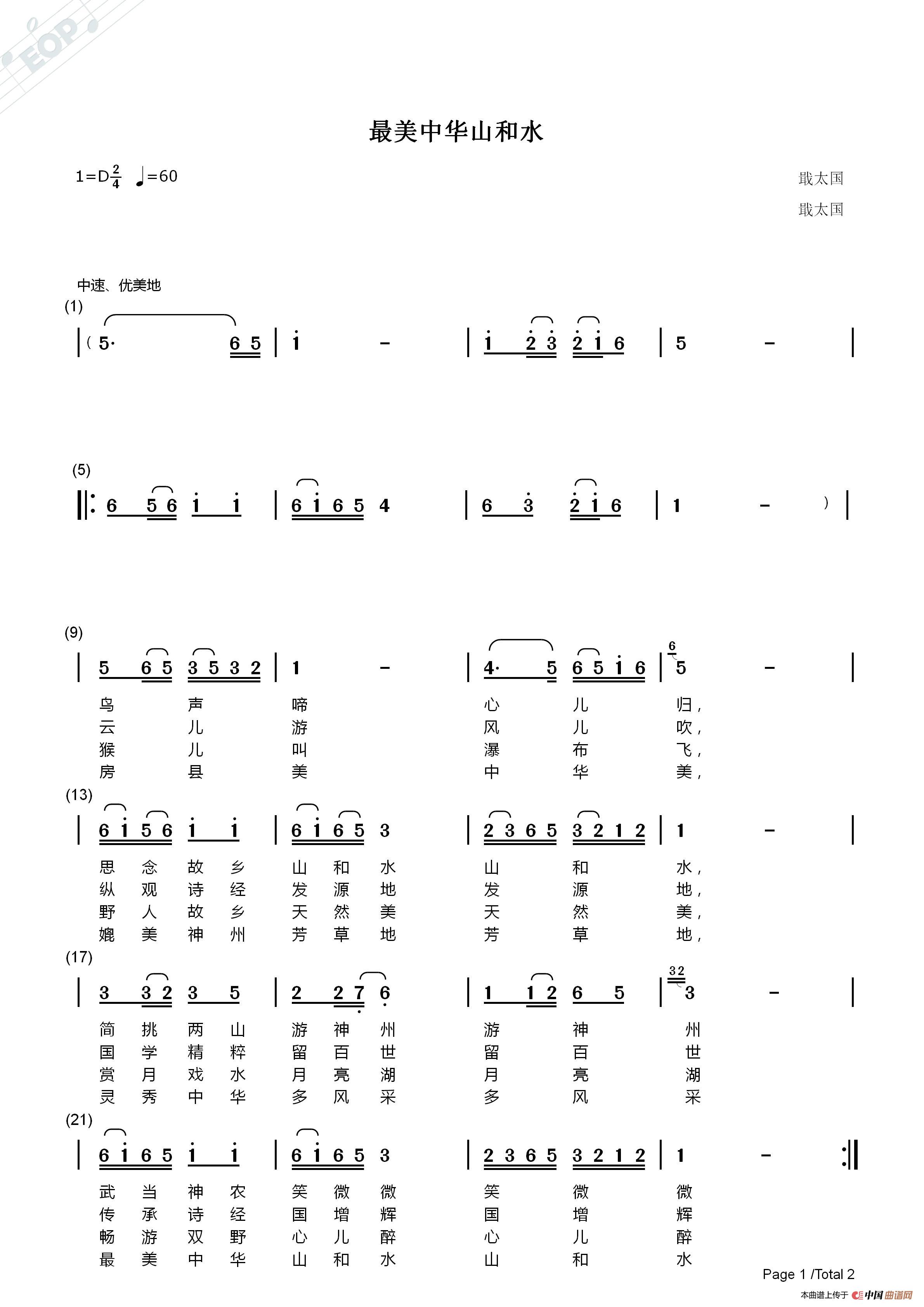 提示:在曲谱图片上单击右键,选择“图片另存为...”即可将曲谱保存到您的电脑中,打印时候可将图片插入到WORD中,调整合适大小打印即可。