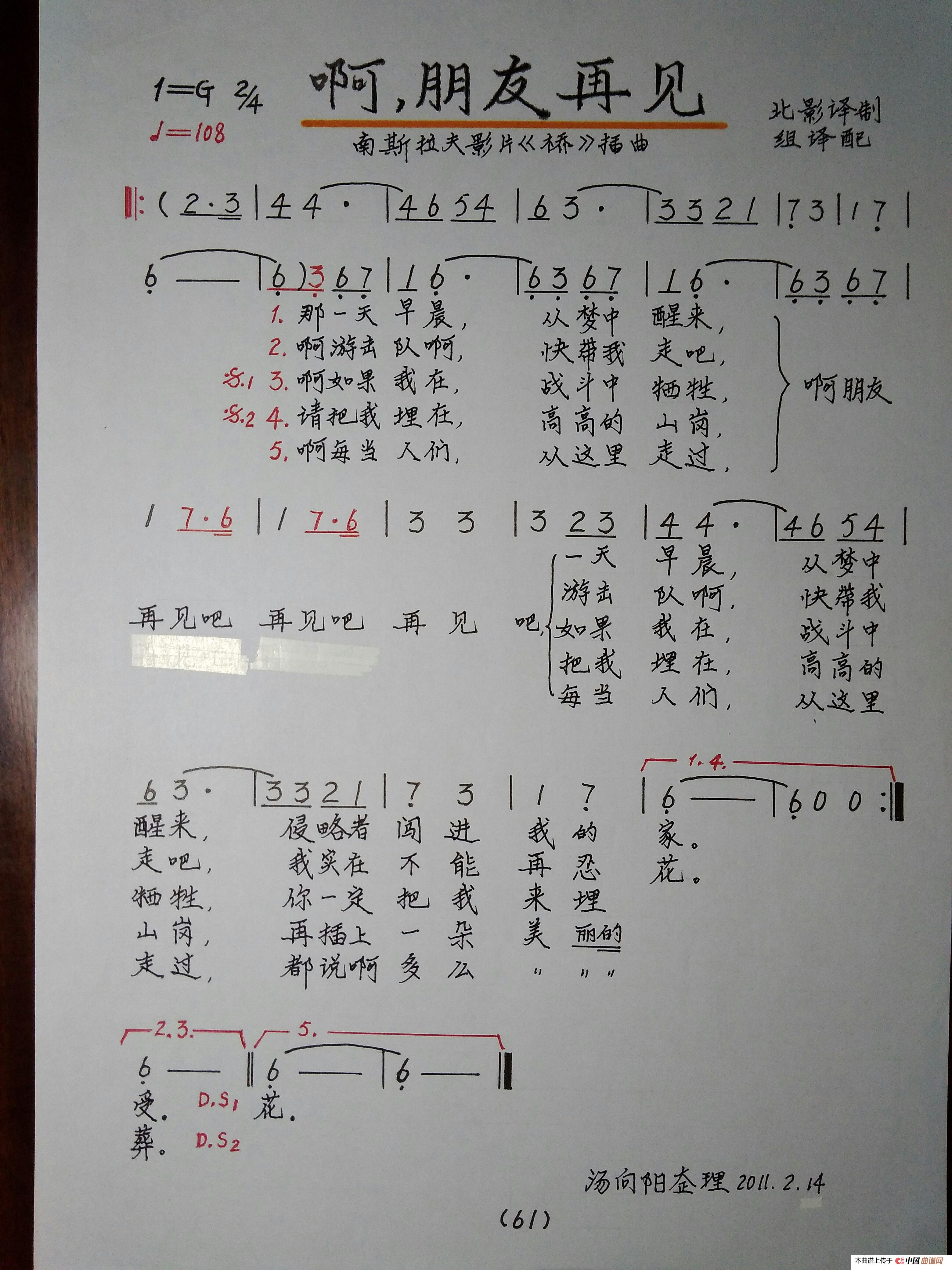 关于《啊朋友再见》曲谱的评论